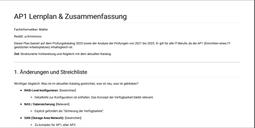 Dieser Guide basiert auf dem neuen Prüfungskatalog 2025 sowie der Analyse der letzten 9 Prüfungen (2021–2025). Er ist für alle IT-Berufe (FISI, FIAE, FIDP, FIDV) geeignet, da die AP1 inhaltsgleich ist.