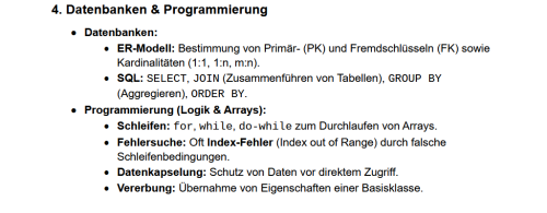 Alle wichtigen Themen aus den letzten Prüfungen ab 2021 - 2025.