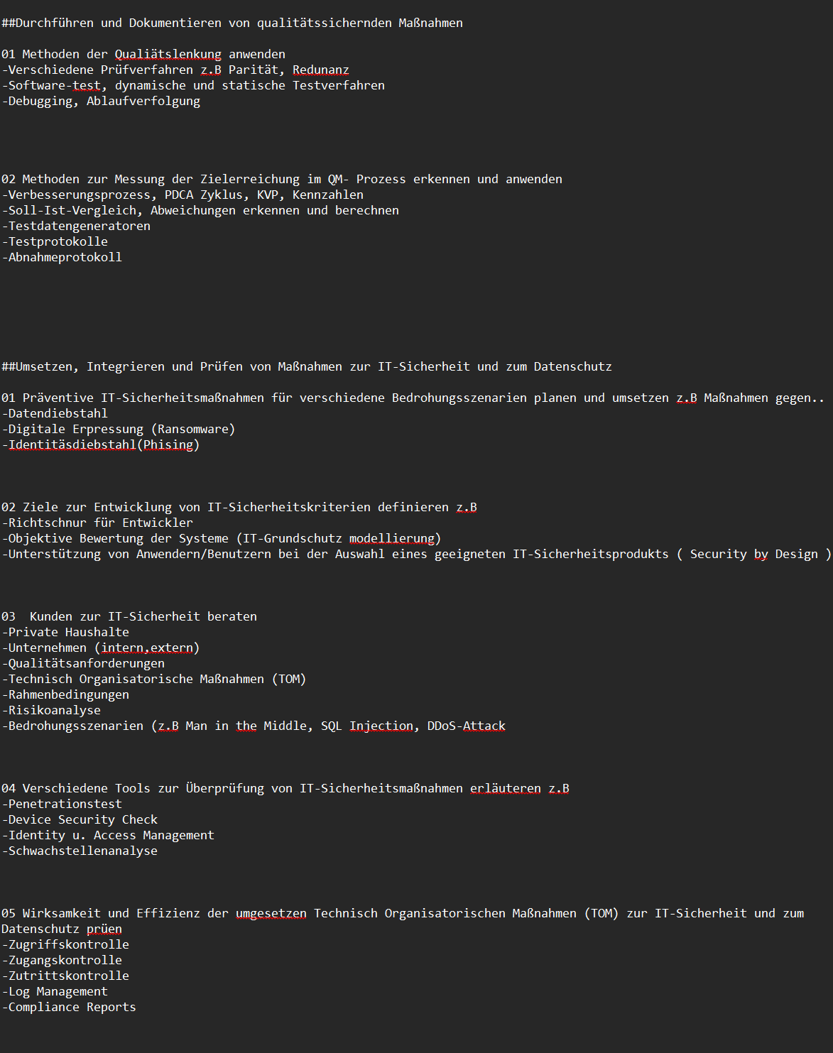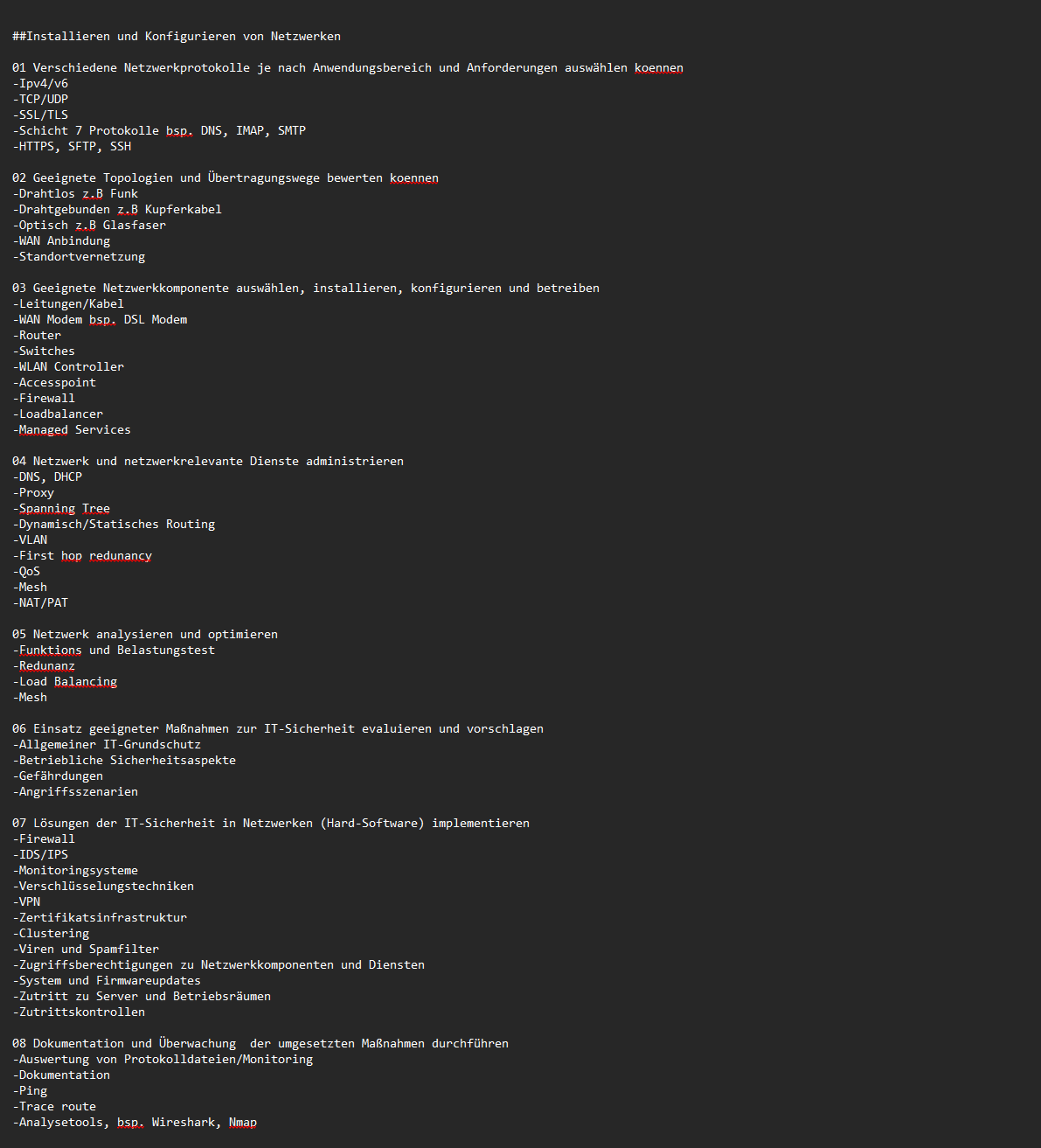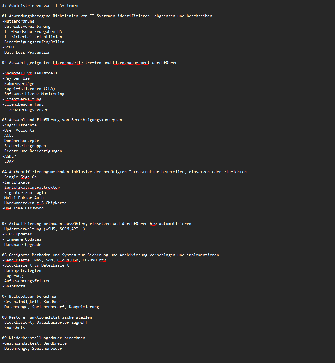 Eine große Ansage an alle die jetzt auch die IHK-Winterprüfung 2025 im Bereich Systemintegration schreiben. Da die IHK uns nicht konkret die Prüfungsthemen vorlegt, sondern diese im Prüfungskatalog erworben werden muss. Habe ich GA1 u. GA2 Themen in einer txt. verpackt, ein paar Themen doppeln sich als Unterpunkt sind aber je nach Abschnitt auch anders zu verstehen/anzuwenden. Viel Erfolg beim Lernen :)